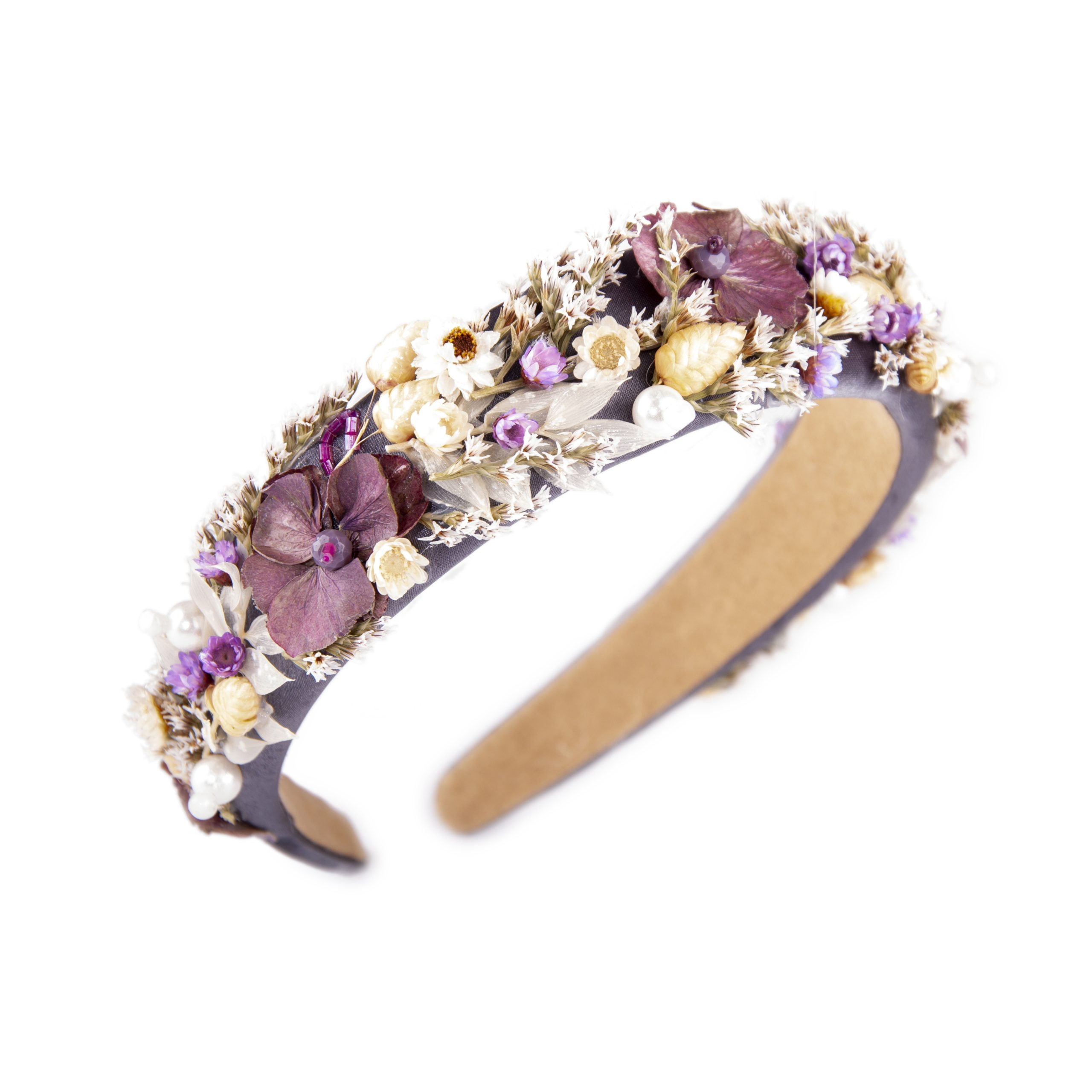 Indulge in refined elegance with our exquisite headband, intricately crafted with a harmonious fusion of preserved natural flowers. Let the delicate allure of ixodia, glixia, helichrysum, statice tatarica, lagurus, hydrangea, and ruscus gracefully enhance this accessory. Tailored to embody the essence of spring and summer, it effortlessly complements flowy outfits and breathable linen, infusing an ethereal touch into any ensemble or special occasion. Elevate your style with the timeless beauty of nature’s finest blooms.